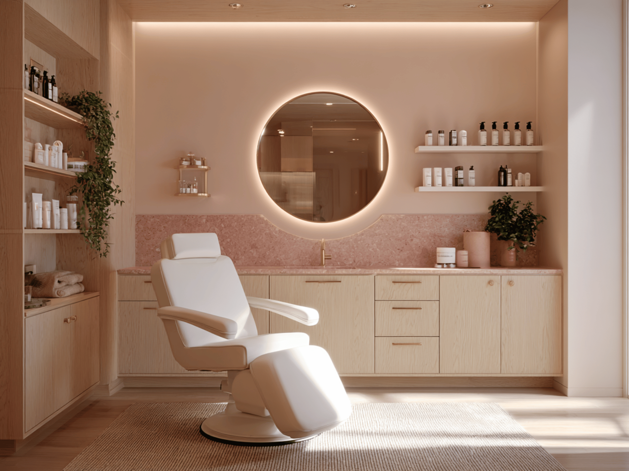 Kinetic Contracts delivered a complete interior fit out for a luxury aesthetic treatment suite in Kensington. The space combines soft blush tones, natural timber finishes, and integrated ambient lighting to create a calm, boutique-style environment.