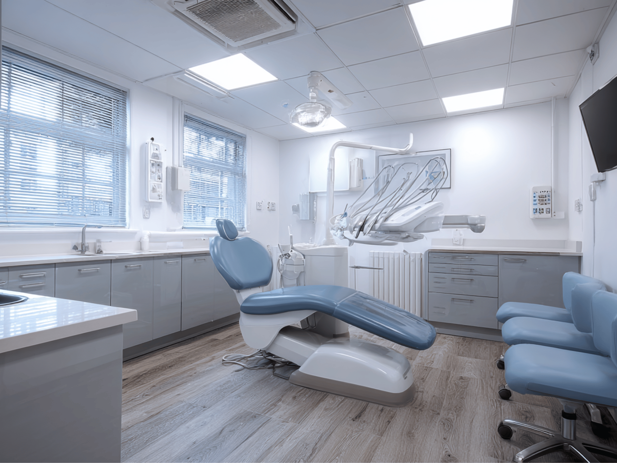 Kinetic Contracts completed a full clinical fit out for a modern dental surgery in Chelsea, delivering a functional and hygienic workspace with precision joinery, integrated storage, and high-spec dental equipment.